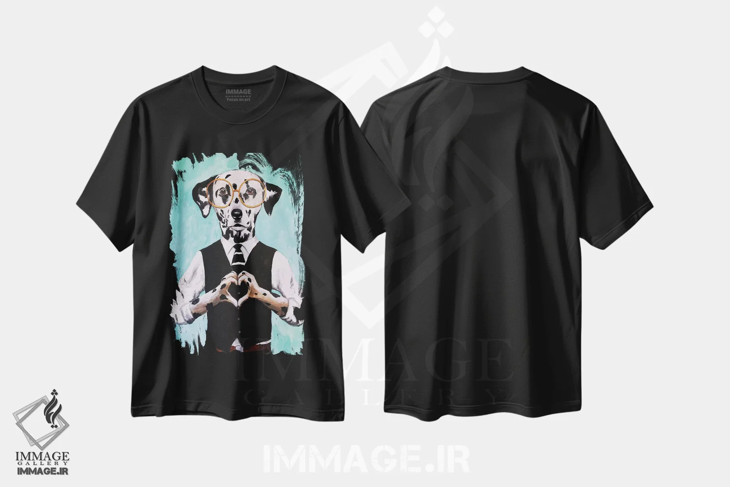 تیشرت مشکی طرح دار دالماتین با علامت قلب، تزئینی اثر کوکو د پاریس | فروشگاه ایماژ