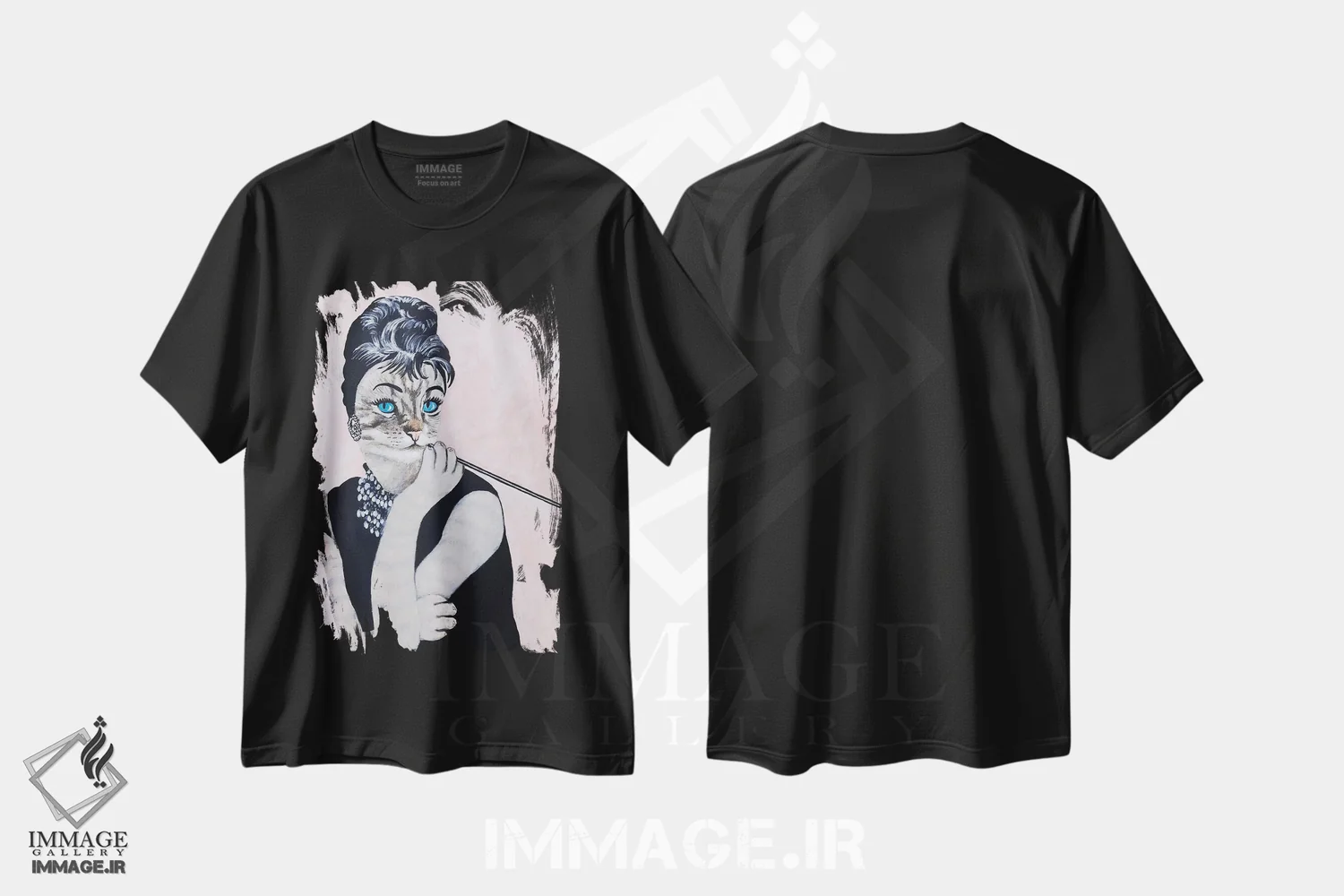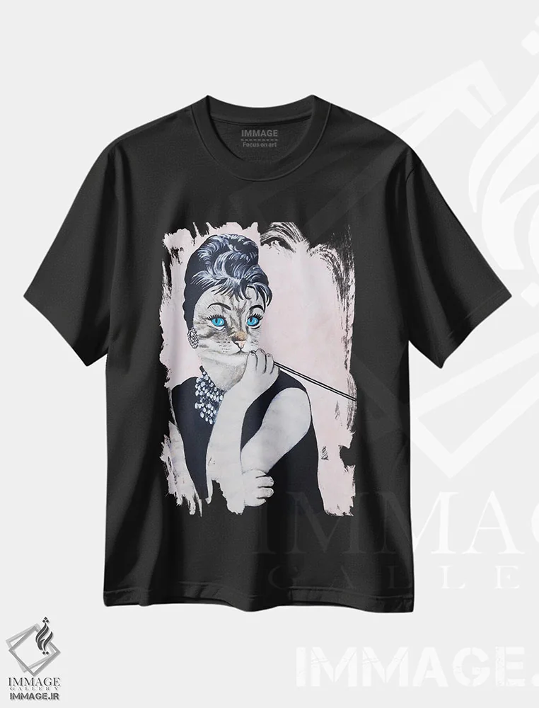تیشرت مشکی طرح دار گربه آدری هپبورن، تزئینی اثر کوکو د پاریس | immage.ir