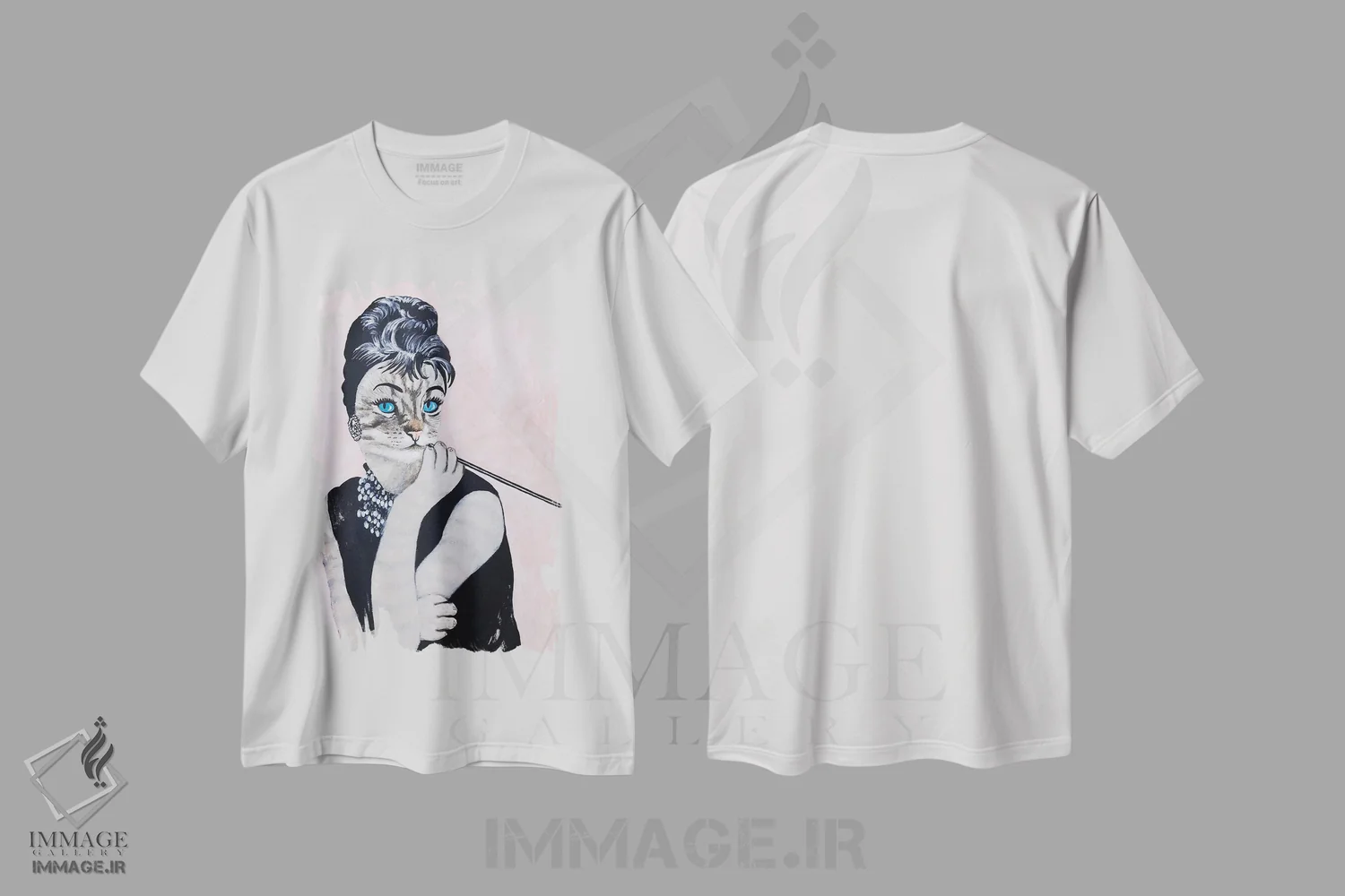 تیشرت سفید طرح دار گربه آدری هپبورن، تزئینی اثر کوکو د پاریس | فروشگاه ایماژ