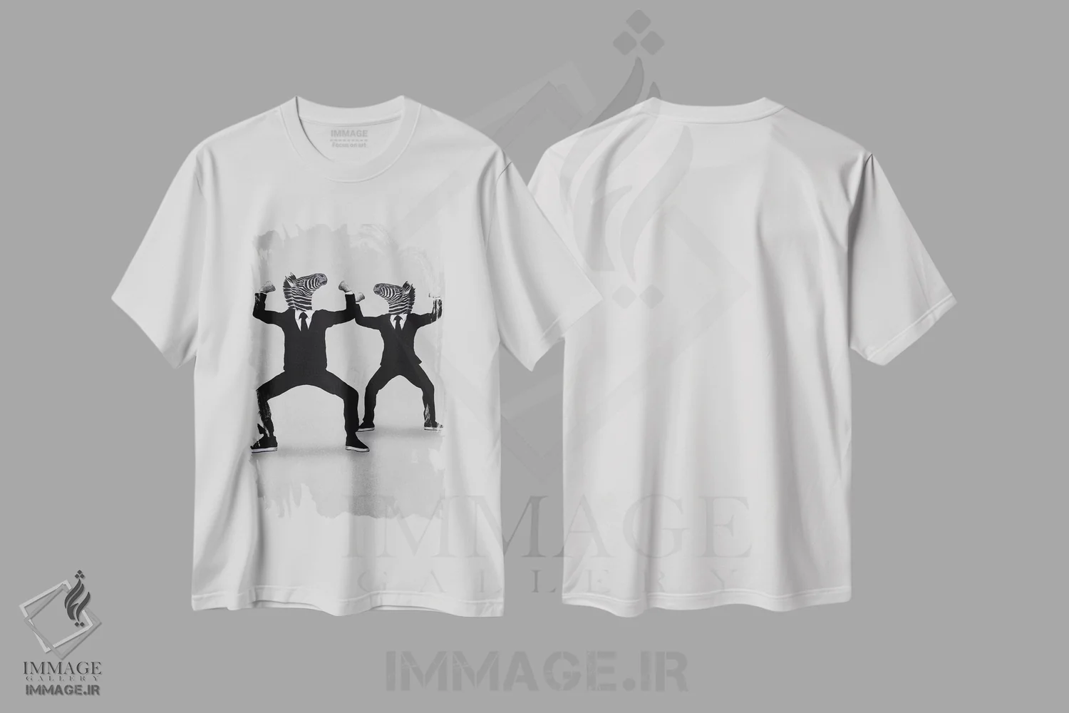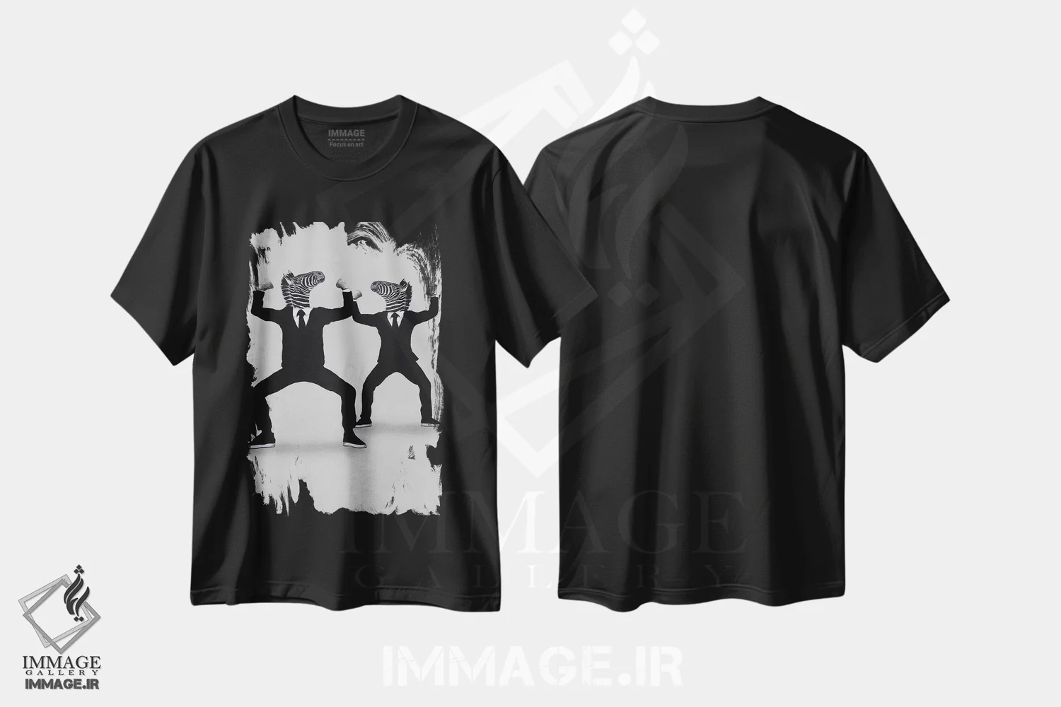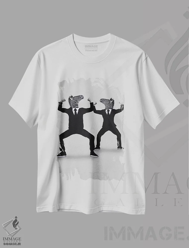 تیشرت مشکی طرح دار گورخر در سبک وگ، هنر تزئینی سیاه و سفید اثر کوکو د پاریس | فروشگاه ایماژ