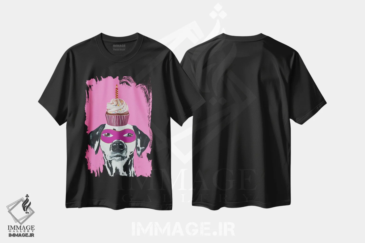 تیشرت مشکی طرح دار دالماتین با کیک کوچک اثر کوکو د پاریس | فروشگاه ایماژ