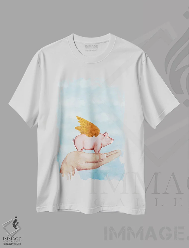 تیشرت سفید طرح دار خوک با بال های طلایی اثر کوکو د پاریس | immage.ir