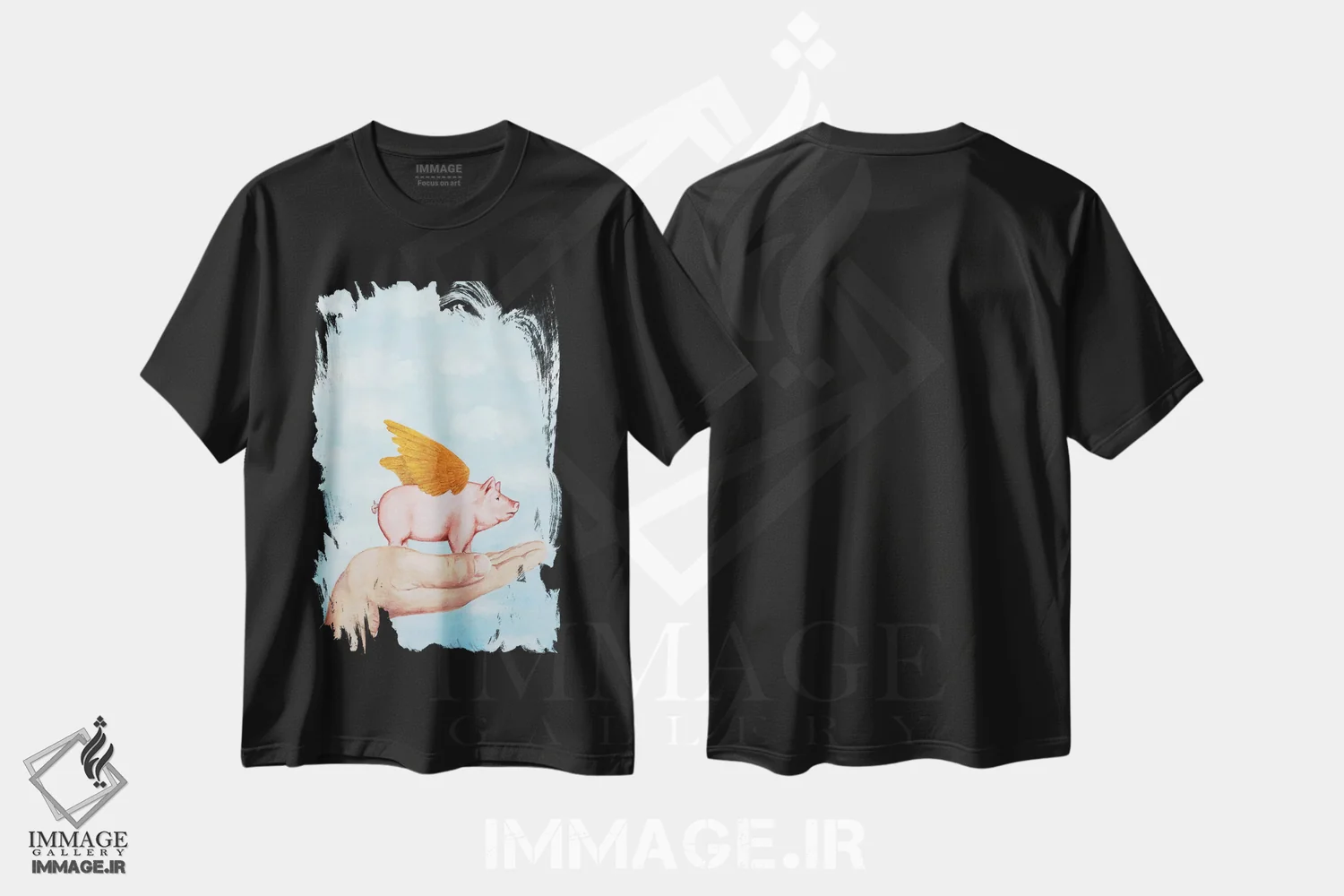 تیشرت مشکی طرح دار خوک با بال های طلایی اثر کوکو د پاریس | فروشگاه ایماژ