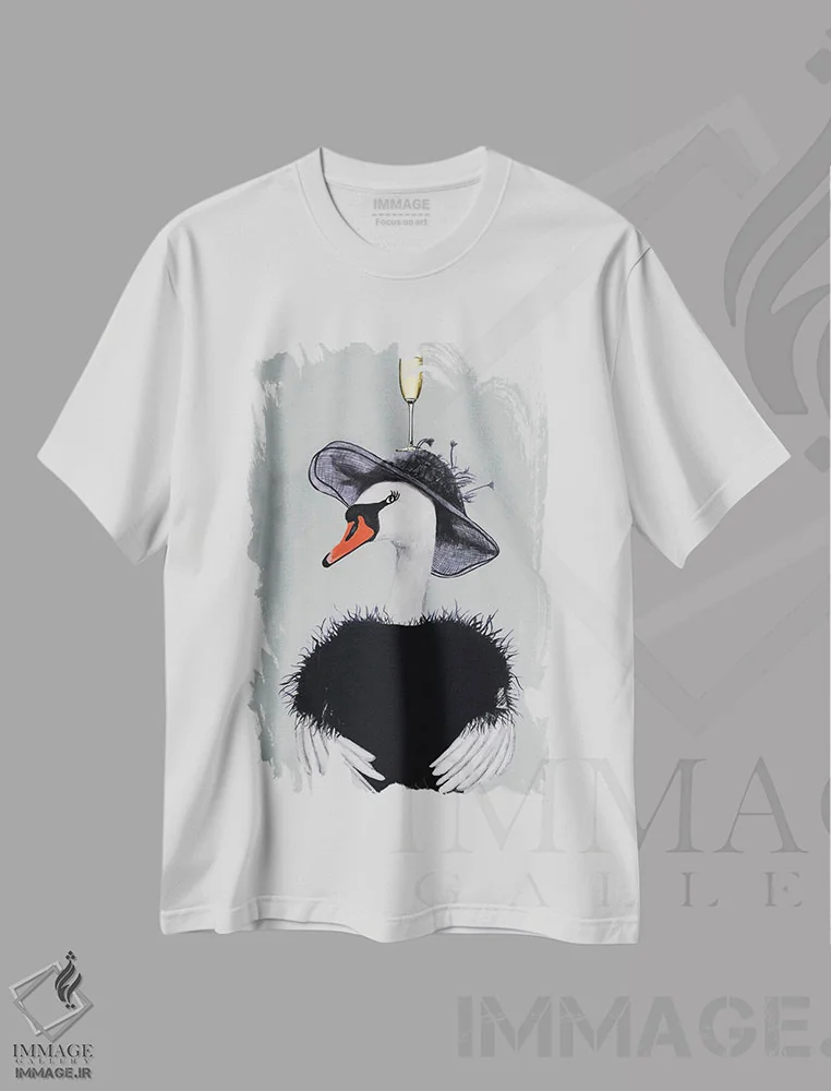 تی شرت هنری «قو با جام نوشیدنی گازدار» و ایده های ست