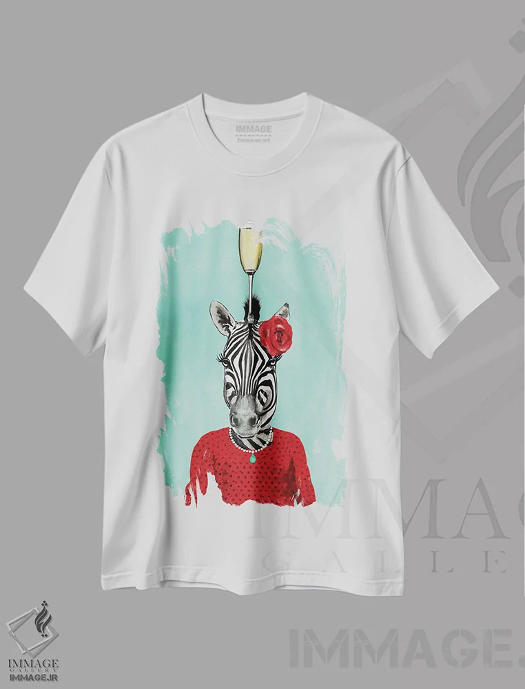 تی شرت هنری «گورخر با جام شامپاین» برای استایل های خاص