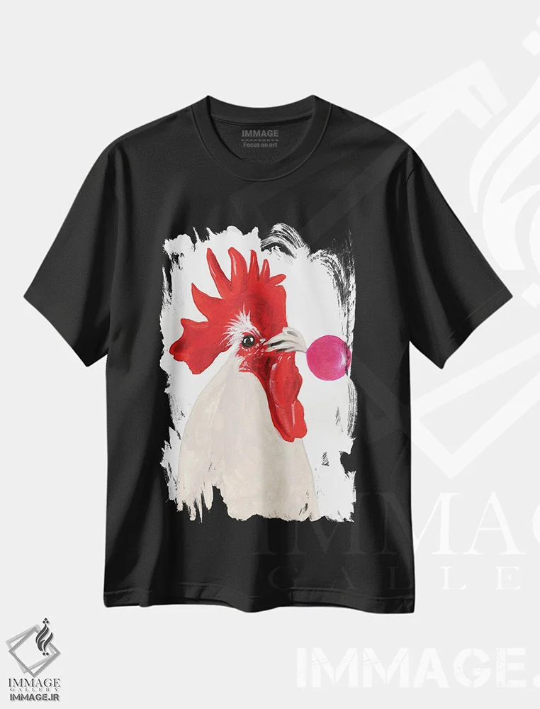 تیشرت مشکی طرح دار خروس با آدامس بادکنکی، دکور روستایی اثر کوکو د پاریس | immage.ir
