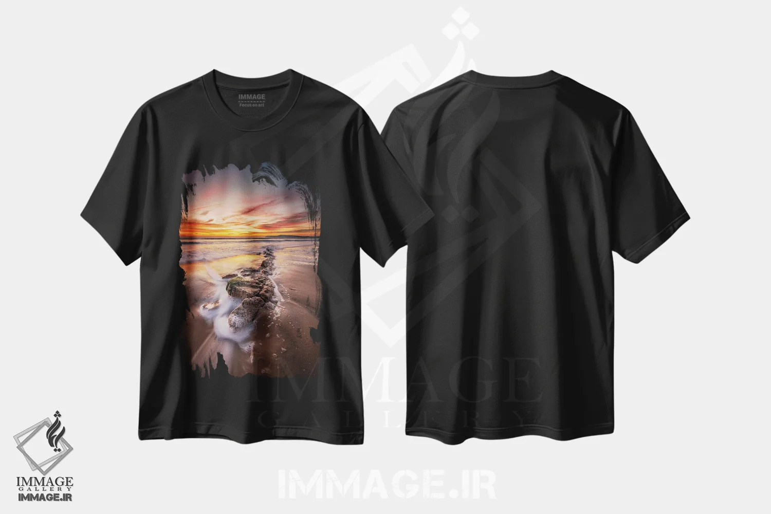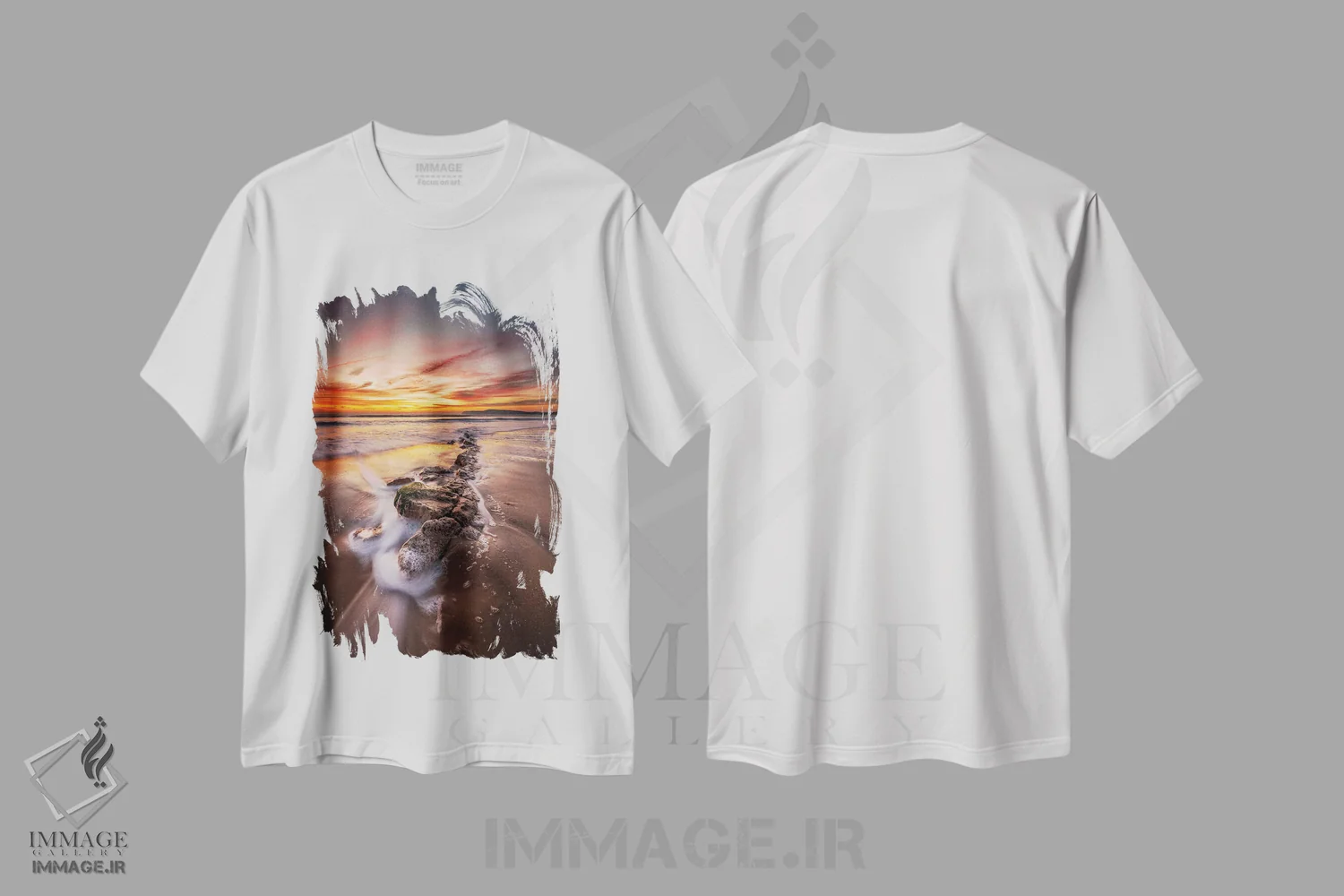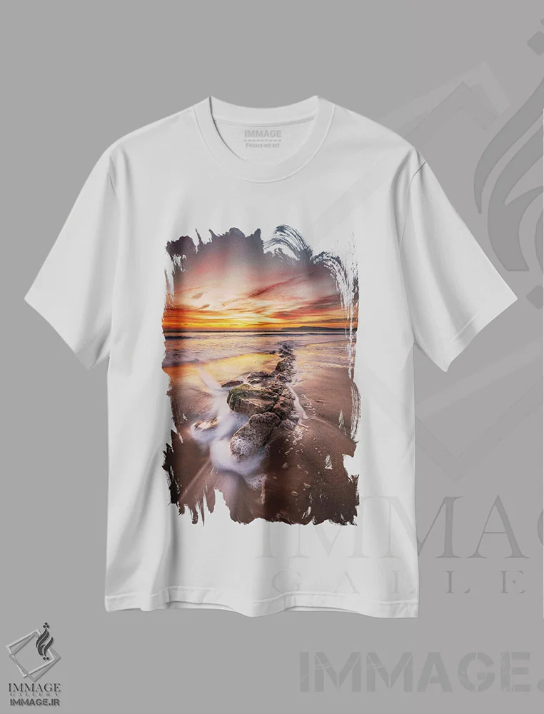 تیشرت طرح دار نمای پرتره غروب خلیج کامپتون اثر چاد پاول