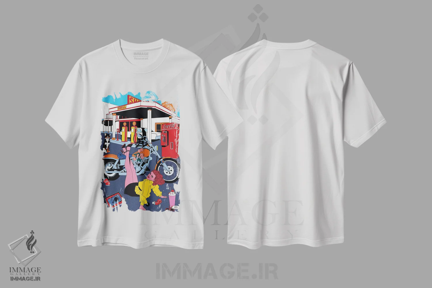 تیشرت سفید طرح دار رویای آمریکایی، دکور آمریکایی اثر کازمو | فروشگاه ایماژ