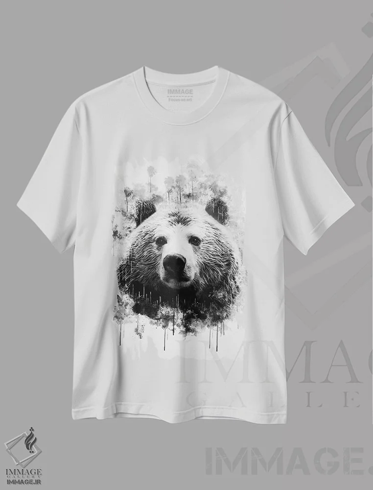 تی شرت «سر خرس سیاه و سفید» برای استایل مینیمال طبیعت دوست