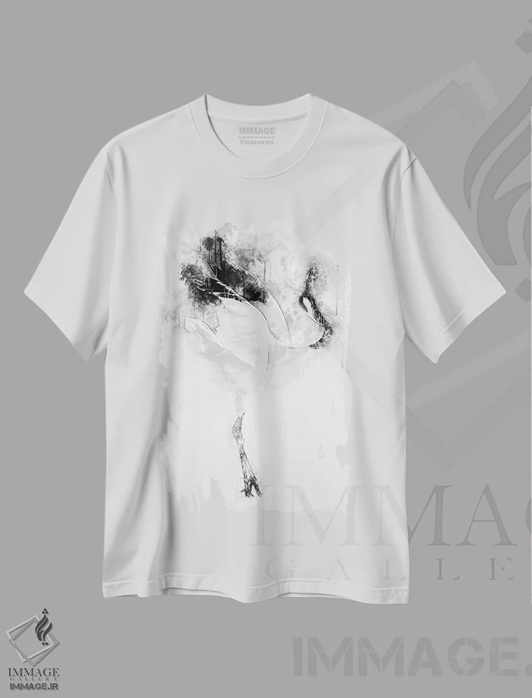 تی شرت سیاه وسفید «درنای تاج قرمز»؛ انتخاب مینیمال برای دوستداران طبیعت