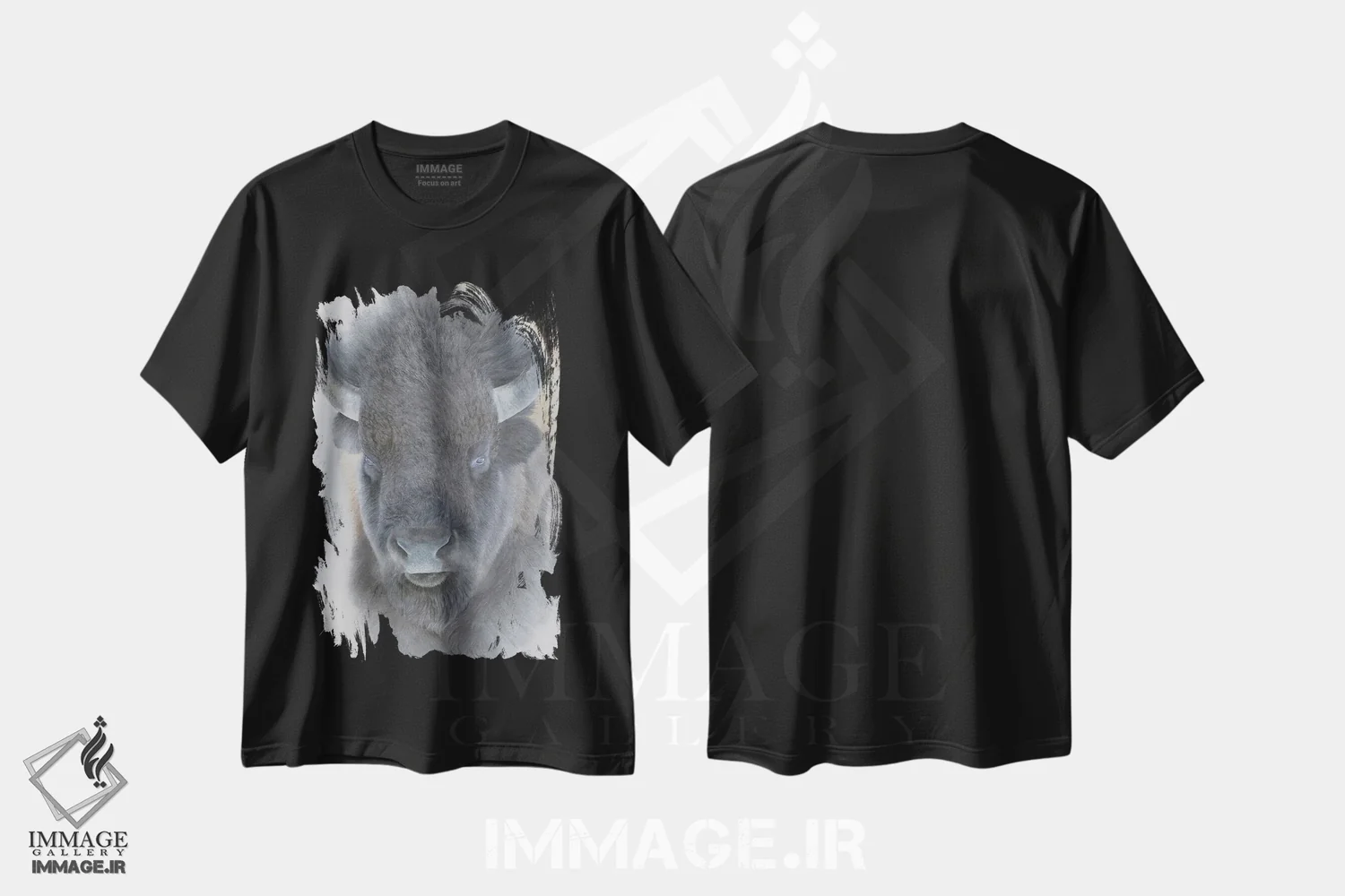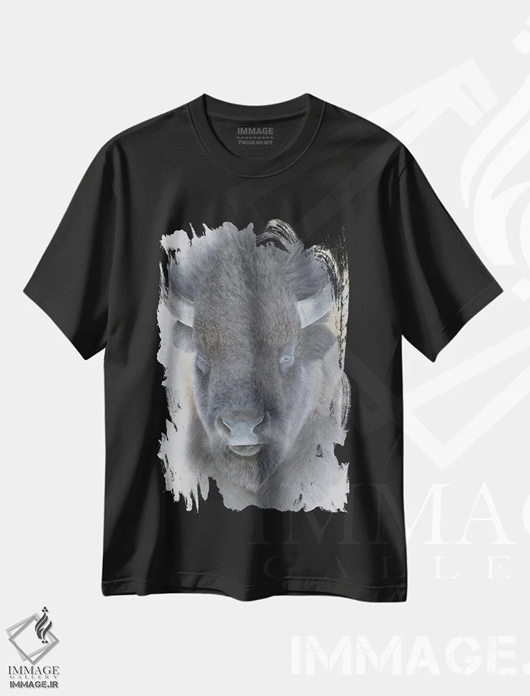 تیشرت مشکی طرح دار گاو کوهان دار بزرگ، هنر فاخر معاصر اثر جیمز کوروین | immage.ir