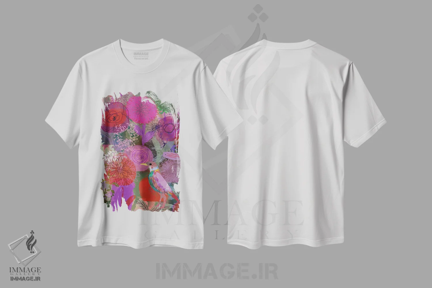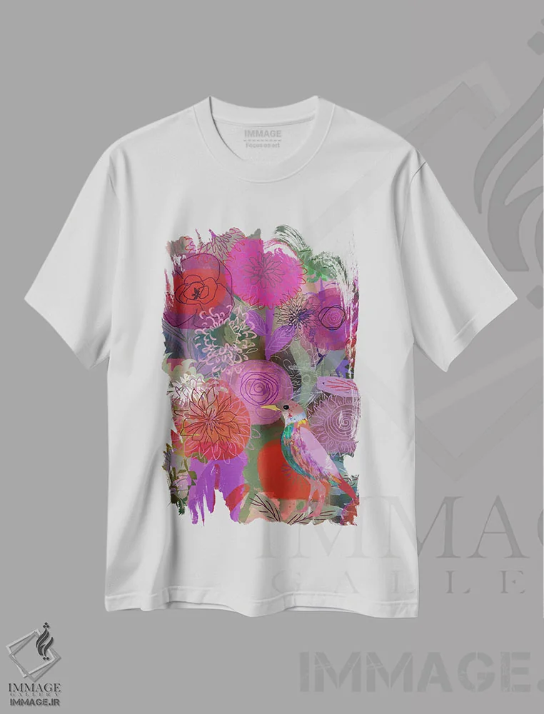 تیشرت سفید طرح دار قرمز و صورتی، هنر دیجیتال اثر کلر وست وود | immage.ir