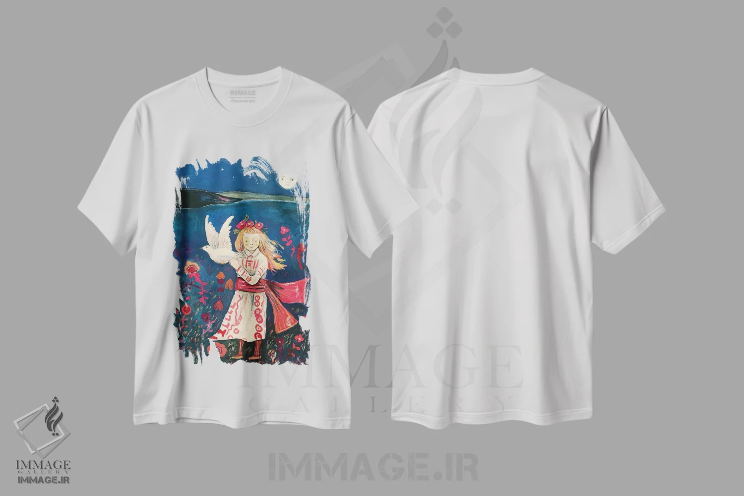 تیشرت طرح دار دختر اوکراینی با کبوتر اثر کلر وست وود