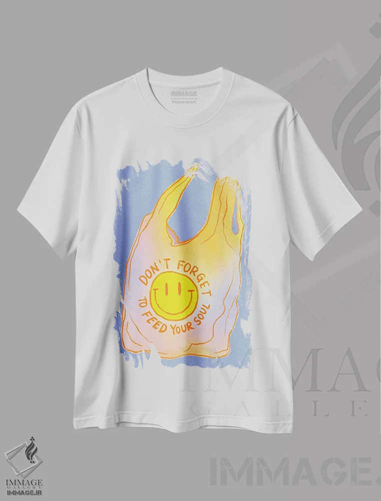 تیشرت سفید طرح دار روحت را تغذیه کن، تزئینی اثر کروموآی | immage.ir