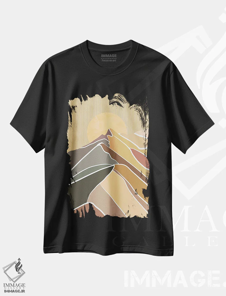 تی شرت «ماه بر فراز کوه ها»؛ حس شاعرانه طبیعت در طراحی انتزاعی