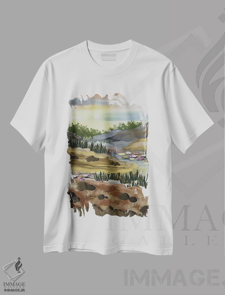 خورشید بر رودخانه؛ تی شرت طبیعت دوست با حس طلوع