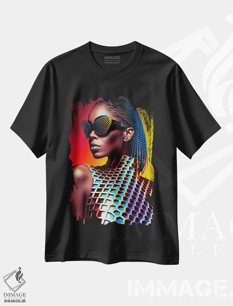تی شرت «مد پیکسلی آفریقایی آینده گرا IV»؛ انرژی رنگ در مد معاصر