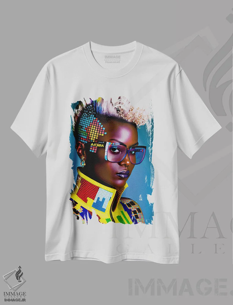 تیشرت طرح دار مد پیکسلی آفریقایی آینده گرا اثر دیجیتال وایلد آرت