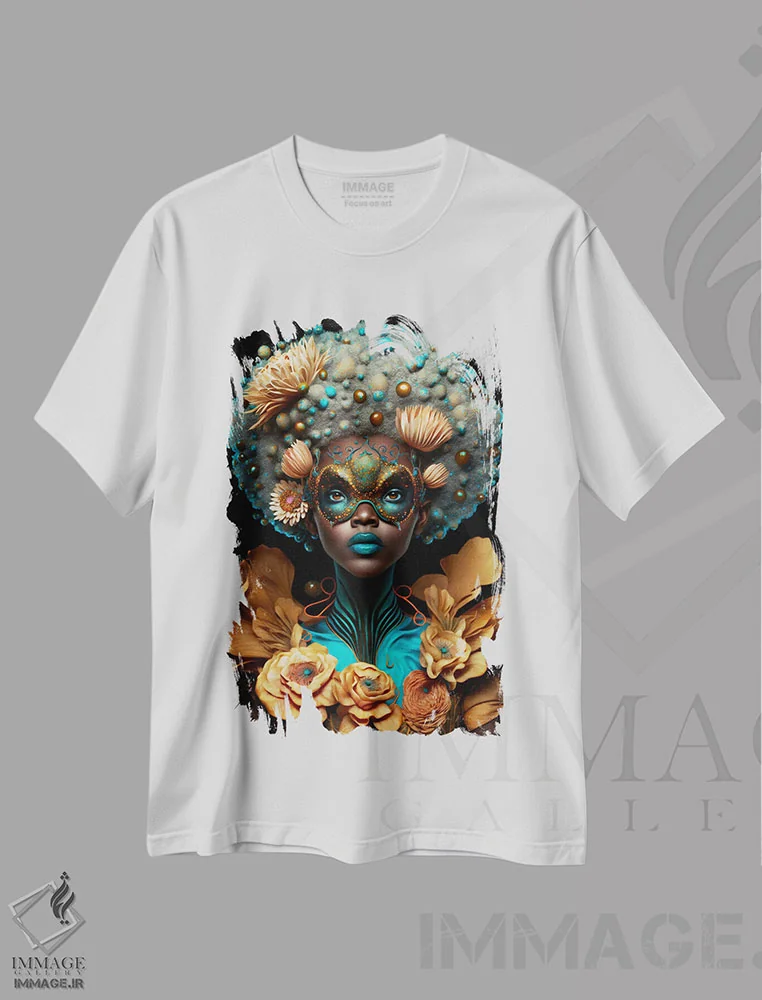 تیشرت طرح دار زن آفریقایی رترو فیوچریست اثر دیجیتال وایلد آرت