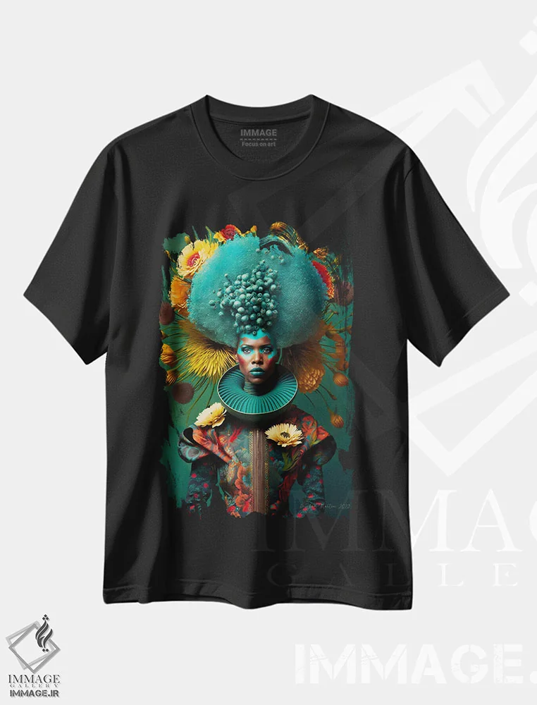 تیشرت طرح دار زن آفریقایی رترو فیوچریست اثر دیجیتال وایلد آرت