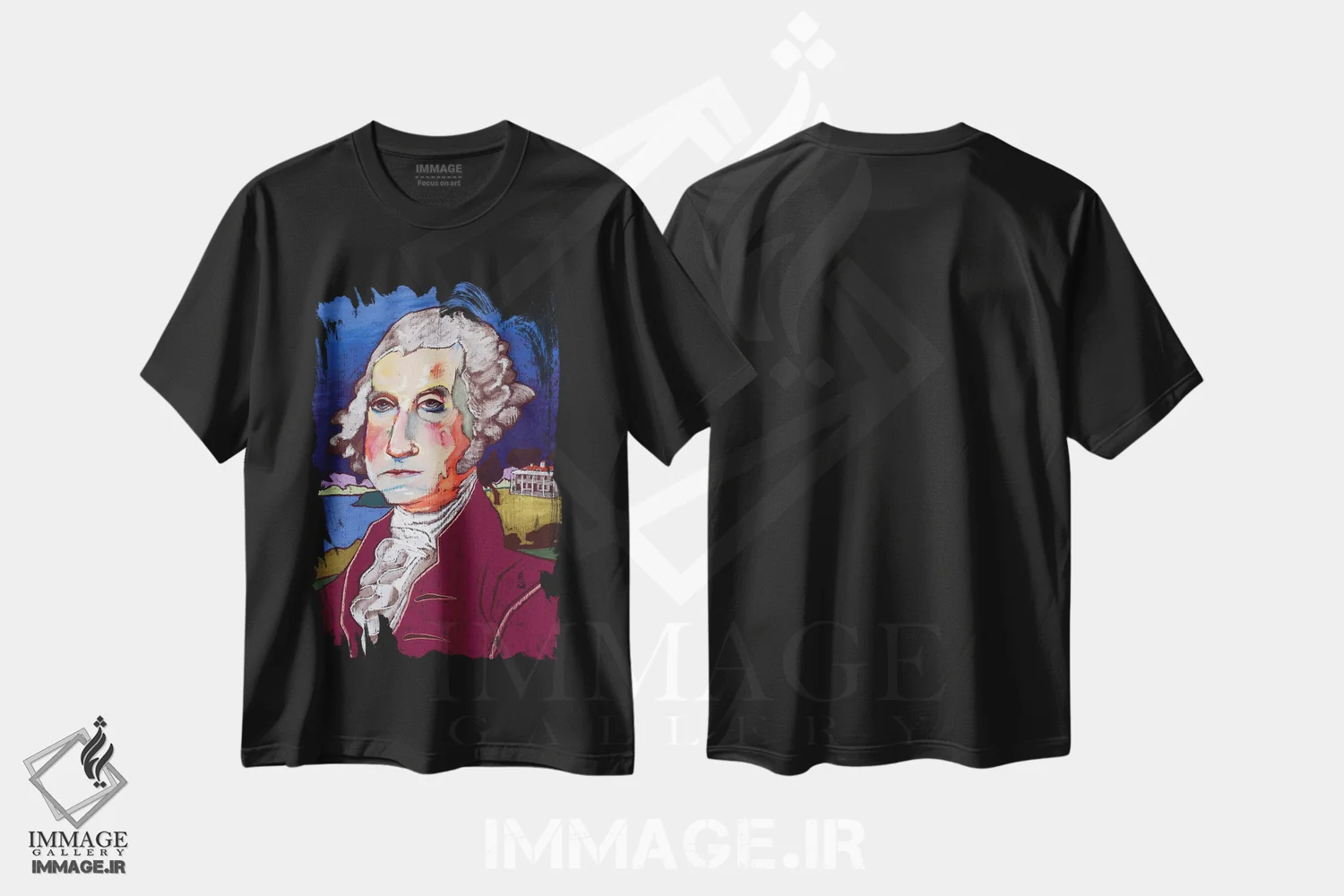 تیشرت مشکی طرح دار پرتره جرج واشنگتن، تزئینی اثر دیویدای هینْدز | immage.ir