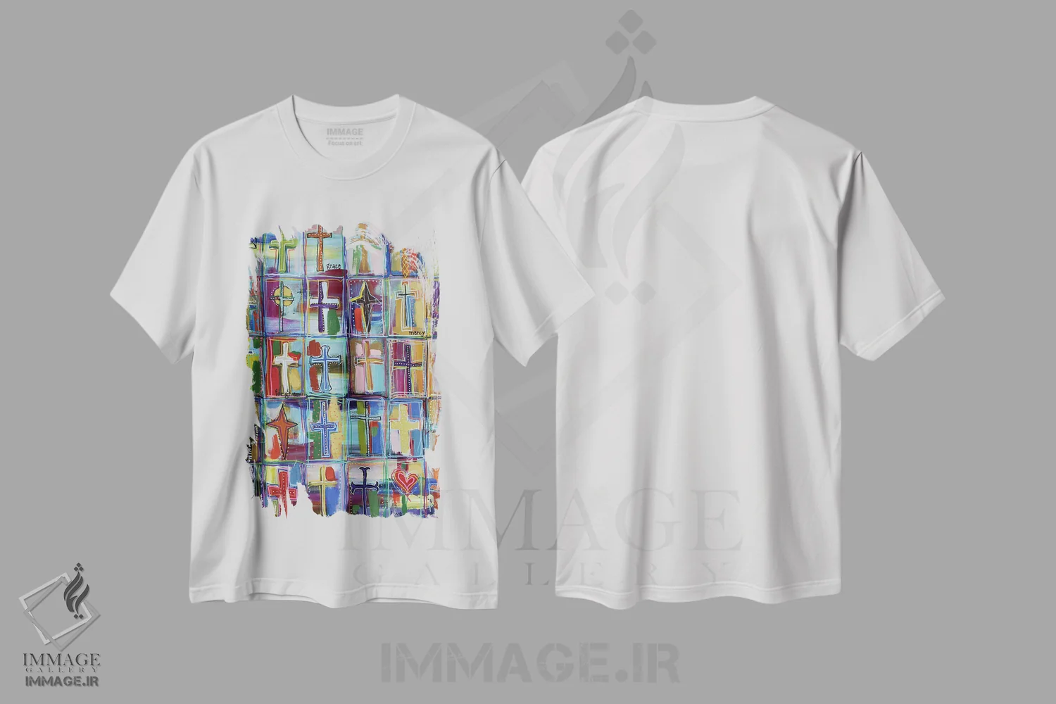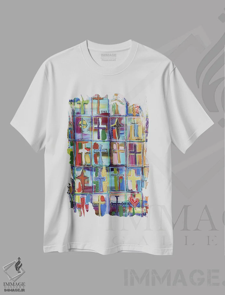تیشرت سفید طرح دار کلاژ صلیب مقدس، هنر دیجیتال اثر دیویدای هینْدز | immage.ir