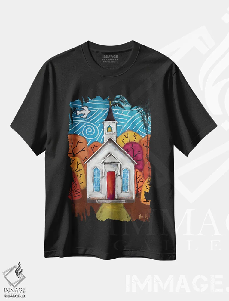 تی شرت «کلیسای پاییزی»؛ آرامش رنگ و فرم در پوشش