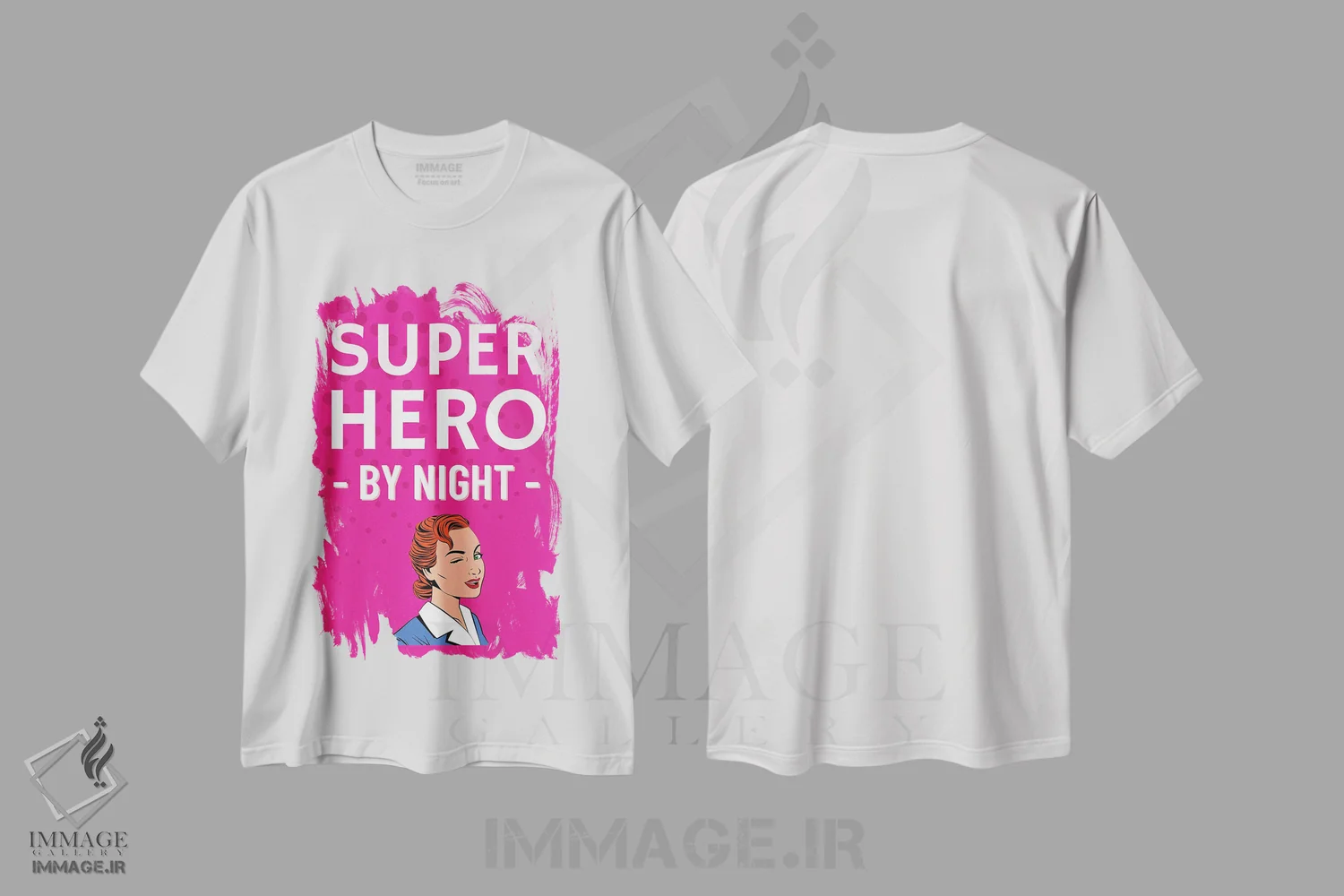تیشرت سفید طرح دار کمیک ابرقهرمان در شب، هنر دیجیتال اثر پیج ترنر | فروشگاه ایماژ