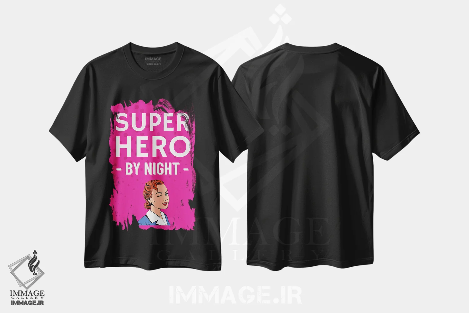 تیشرت مشکی طرح دار کمیک ابرقهرمان در شب، هنر دیجیتال اثر پیج ترنر | immage.ir