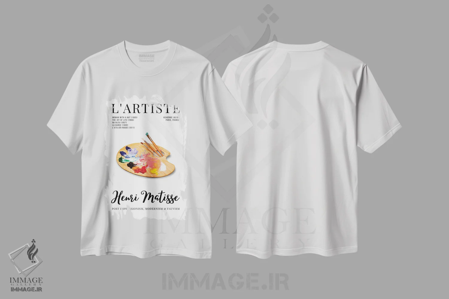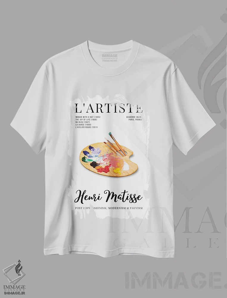 تیشرت طرح دار طرح جلد مجله هنری فرانسوی لارتیست با ماتیس و پالت نقاشی اثر پیج ترنر
