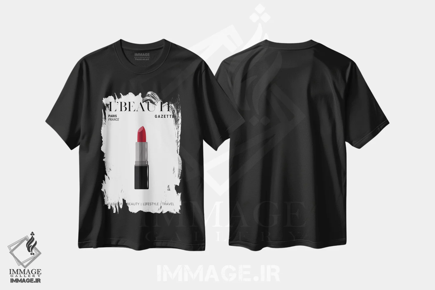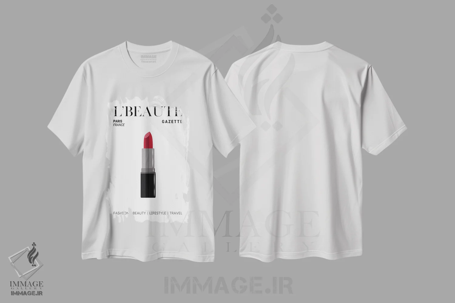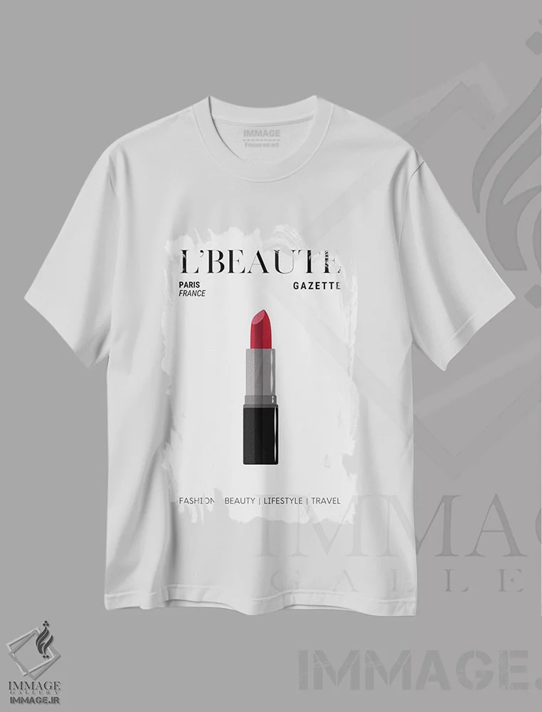 تیشرت طرح دار جلد مجله آرایش L'Beaute Gazette با رژ لب قرمز کلاسیک اثر پیج ترنر