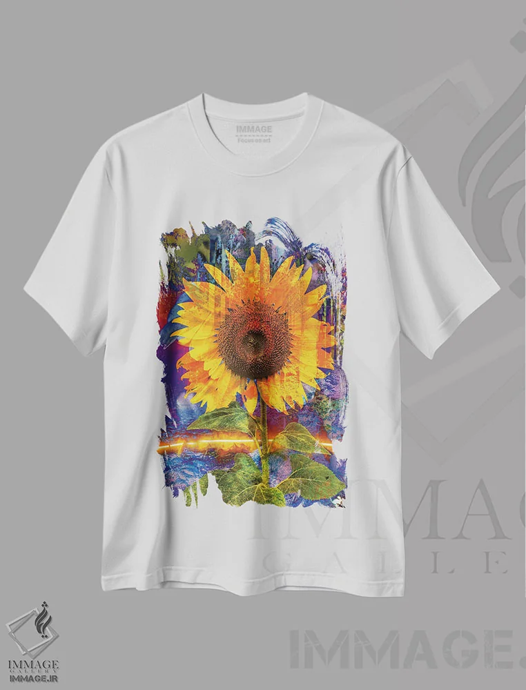 تیشرت سفید طرح دار گل آفتابگردان در جنگل، هنر دیجیتال اثر دیوید لوبلاو | immage.ir