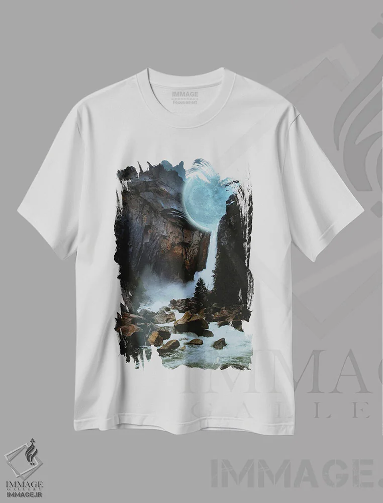 تیشرت سفید طرح دار سقوط نور ماه، هنر دیجیتال اثر دیوید لوبلاو | فروشگاه ایماژ