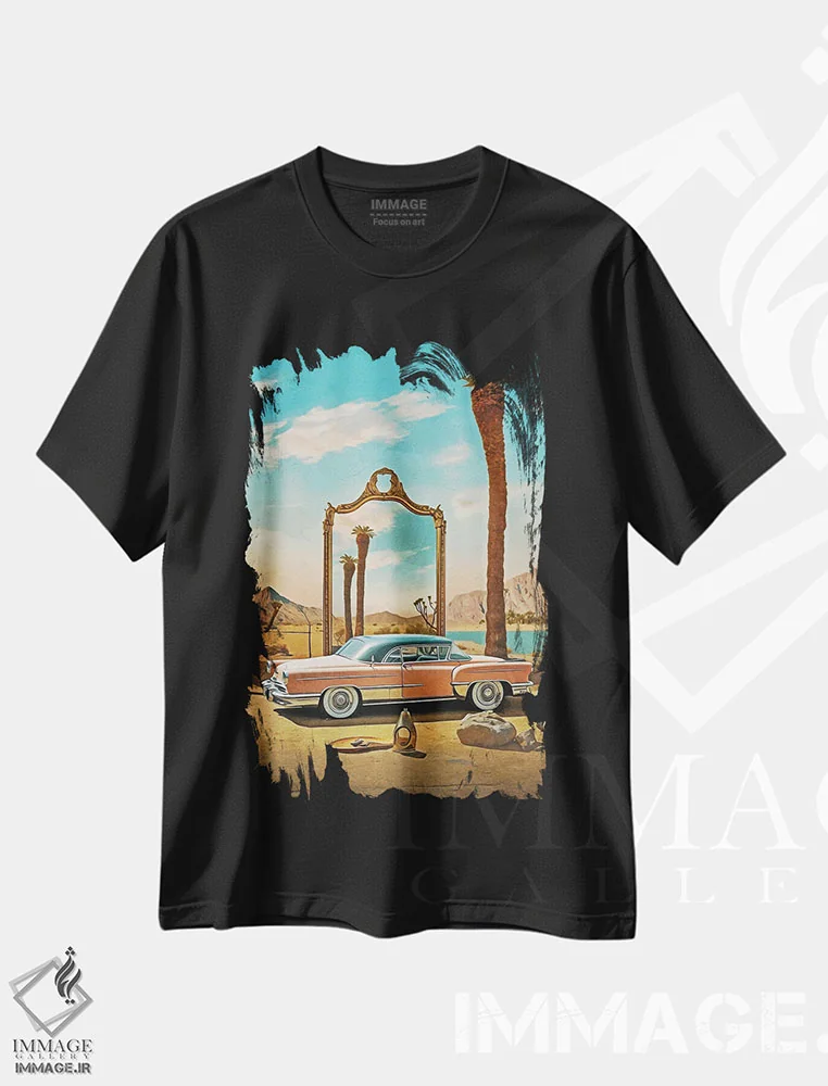 تی شرت هنری «ماشین و آینه»؛ بیابان و استایل مینیمال