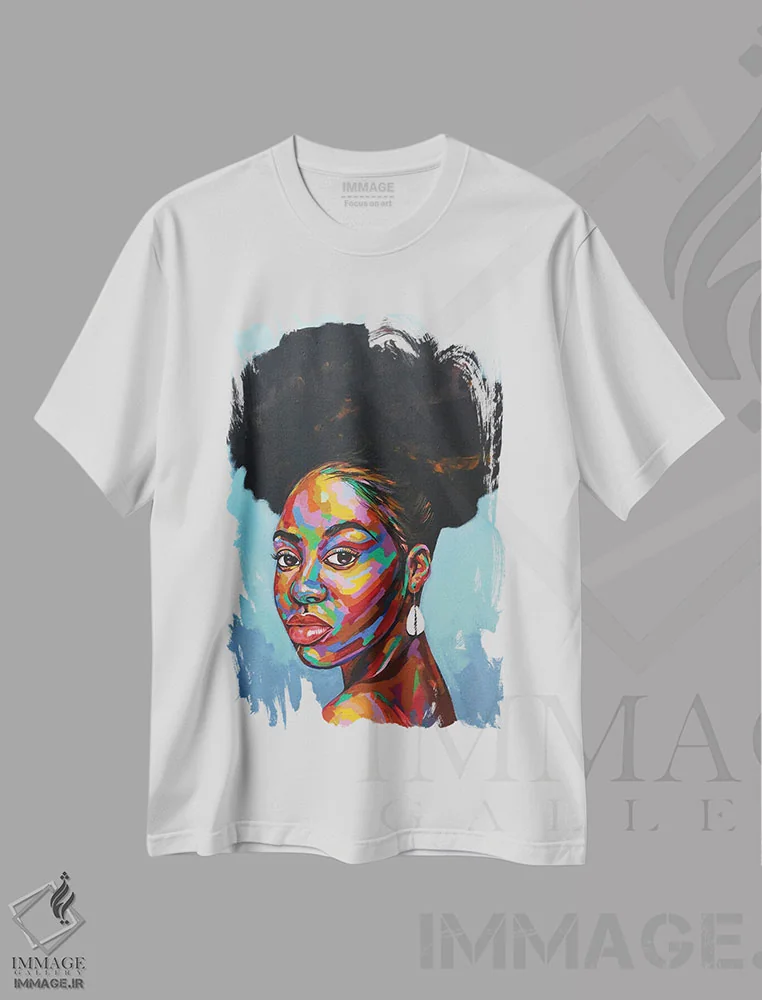تی شرت هنری «هدف وجود X»؛ پرتره زنانه با انرژی رنگ ها