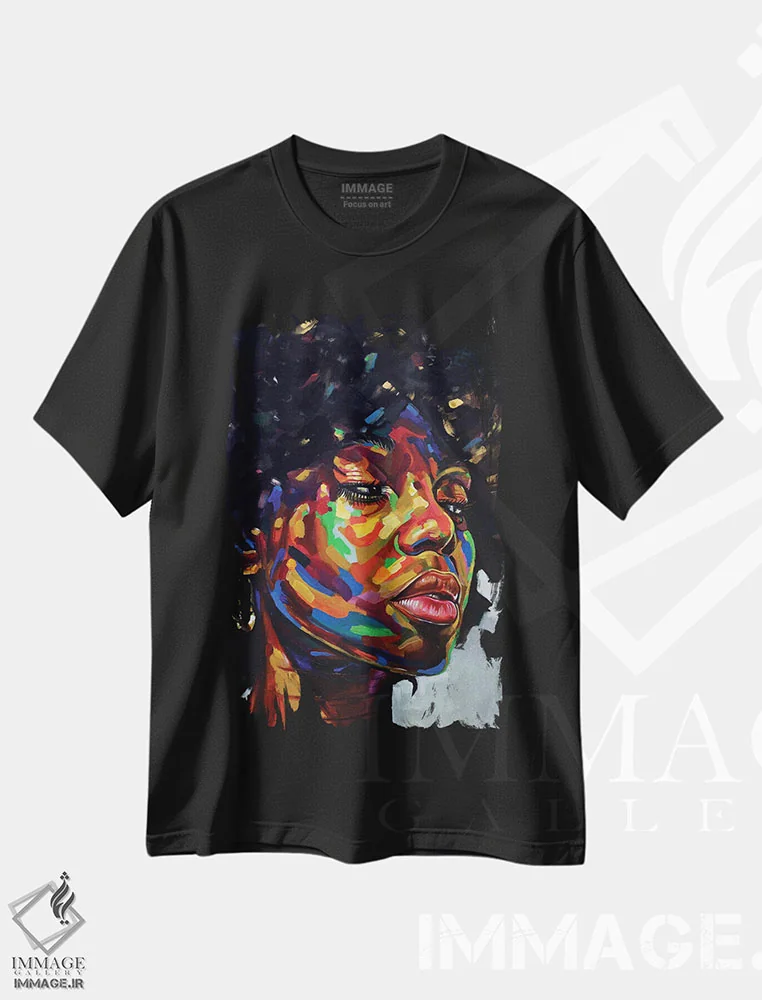 تی شرت «آزاد اما گرسنه III»؛ پرتره زنانه با عناصر مد و جواهرات