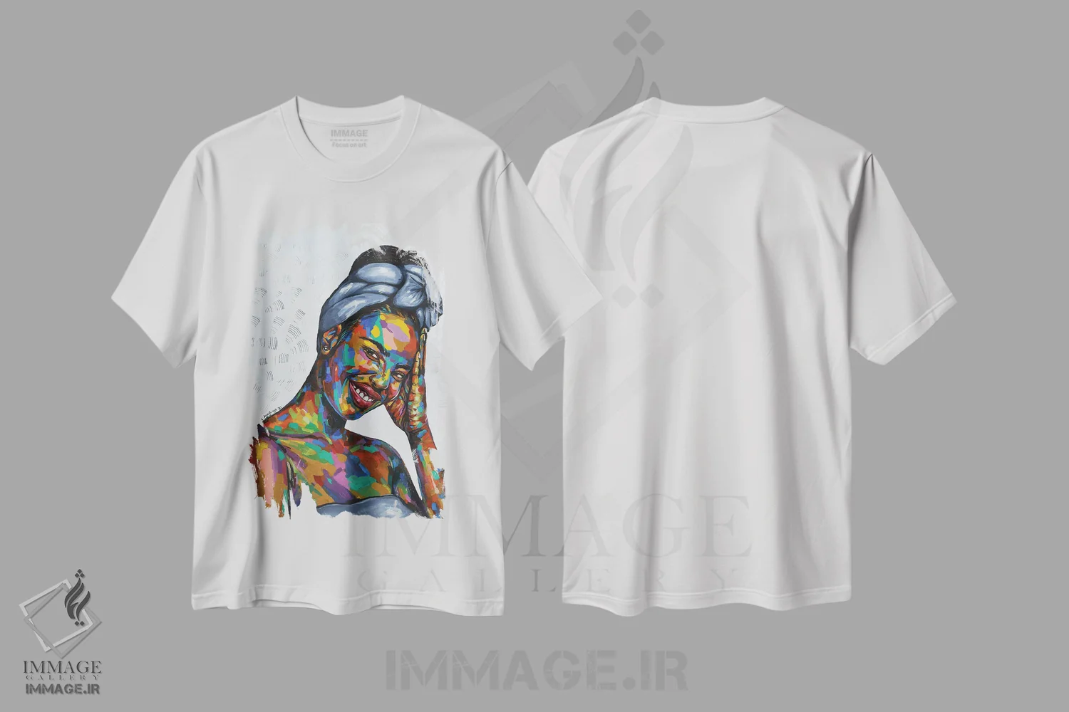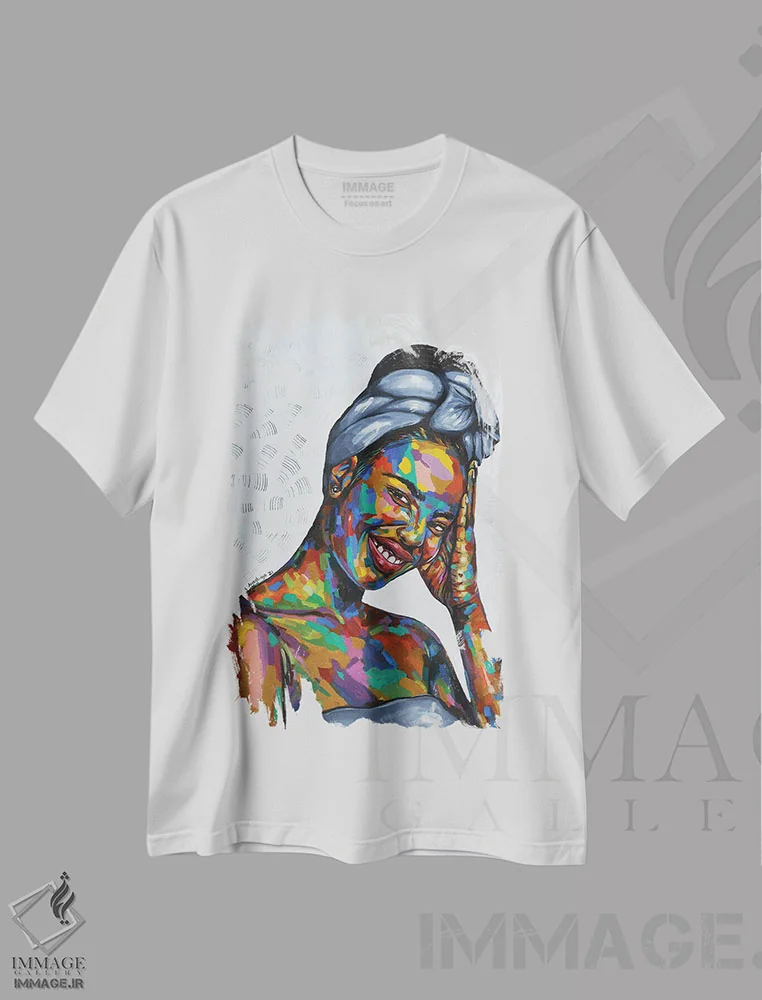 تیشرت سفید طرح دار هدف از وجود V، هنر آمریکایی آفریقایی تبار اثر دامولا آیگبایو | immage.ir