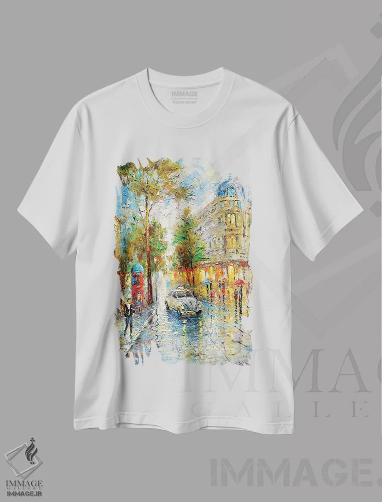 تی شرت «تاکسی سفید»؛ ترکیب رنگ های گرم با حس شهری