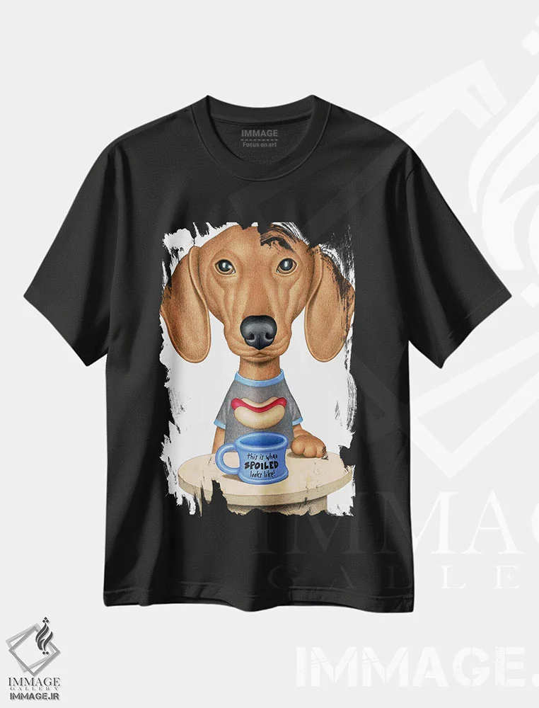 تی شرت «داشهوند قهوه ای با قهوه»؛ ترکیب هنر دستی و شوخی