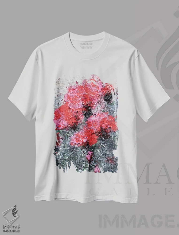 تیشرت سفید طرح دار عشق صورتی-قرمز و شقایق ها، آبستره اثر دوناتلا مارائونی | immage.ir