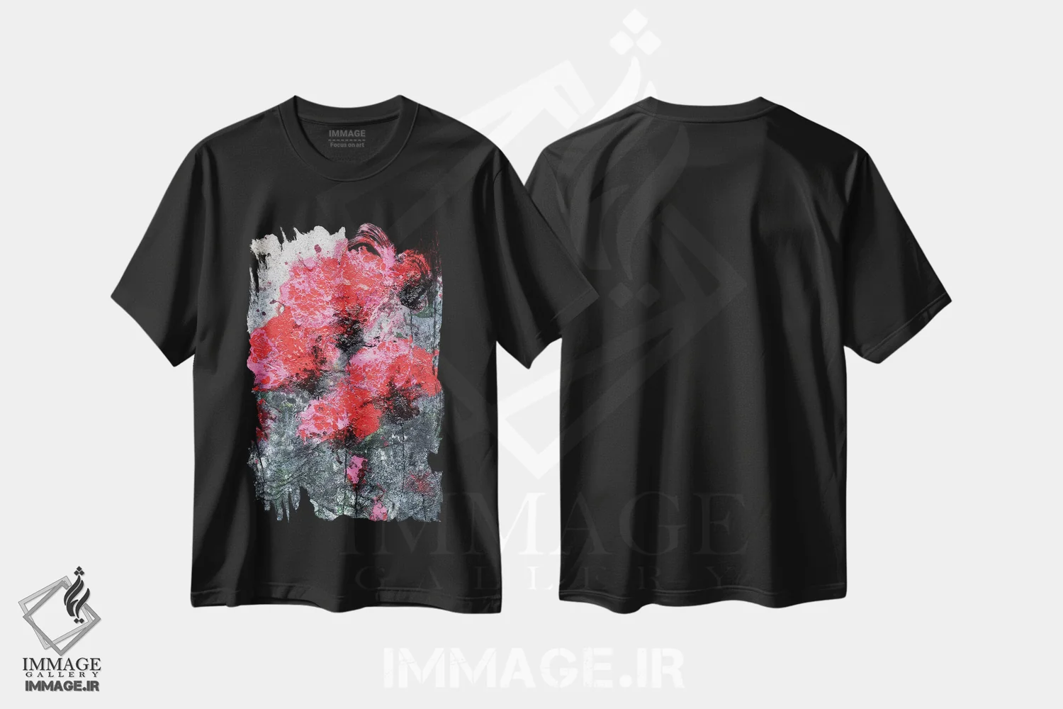 تیشرت مشکی طرح دار عشق صورتی-قرمز و شقایق ها، آبستره اثر دوناتلا مارائونی | فروشگاه ایماژ