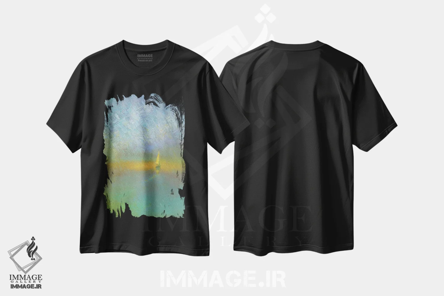تیشرت مشکی طرح دار باران ساحلی، هنر فاخر معاصر اثر دمیتری اولین | فروشگاه ایماژ