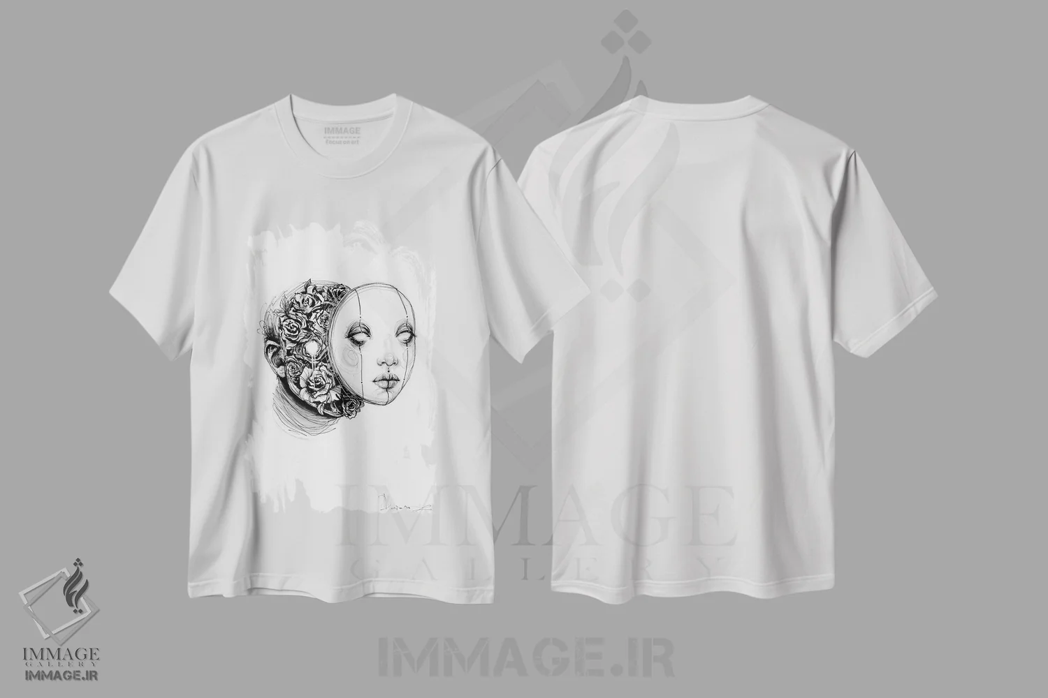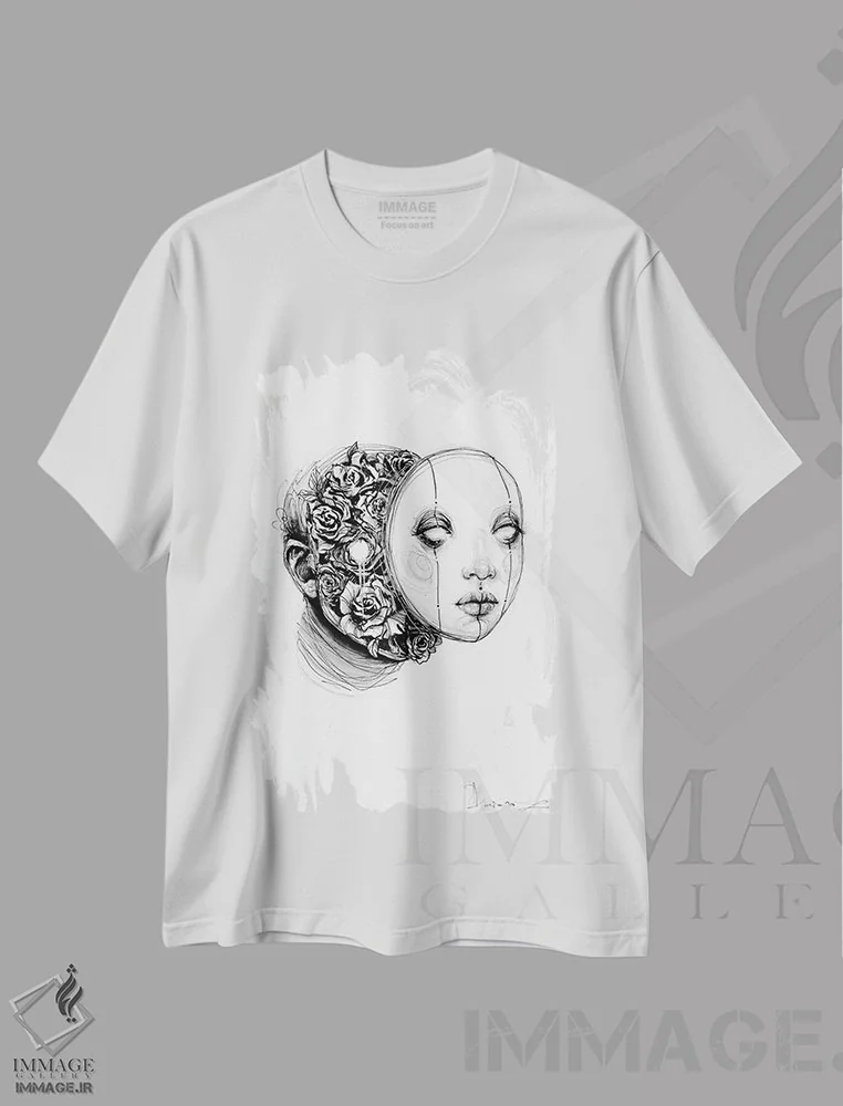تی شرت «یگانه»؛ ترکیب پرتره زنانه و رزهای ظریف