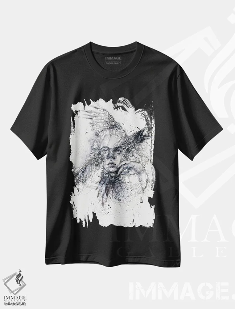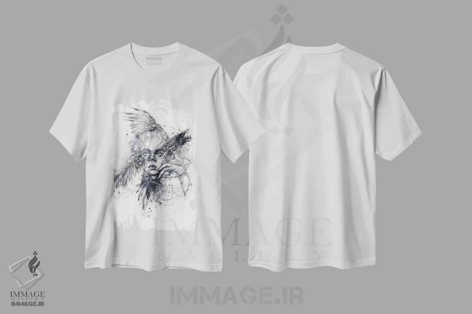 پرتره «پرواز کردن» روی تی شرت؛ مونوکروم مینیمال برای استایل شهری