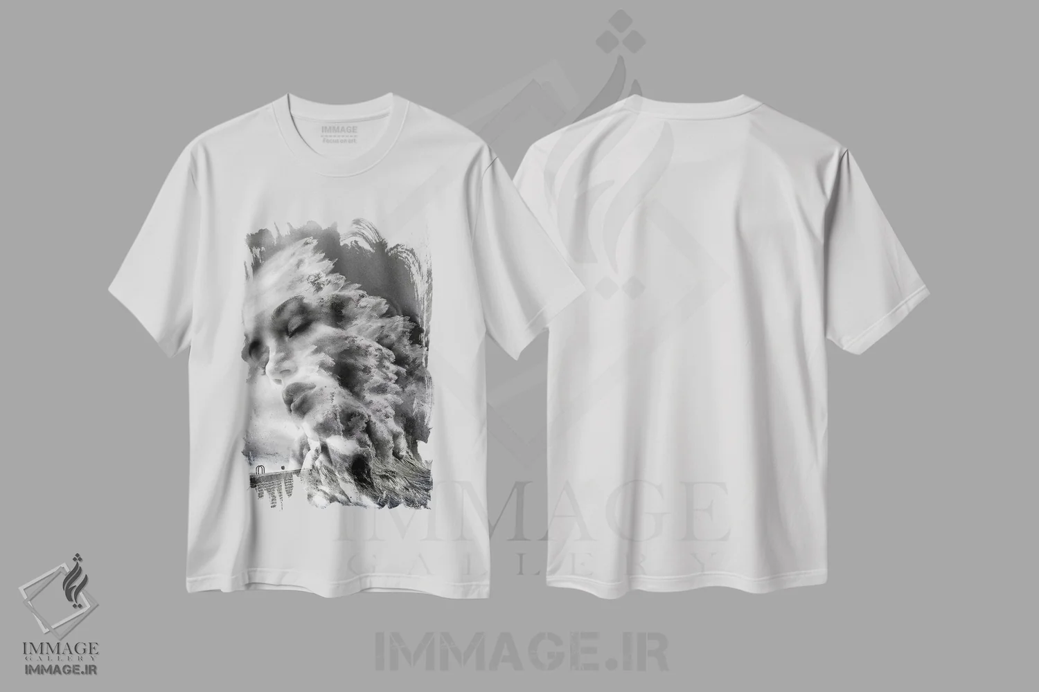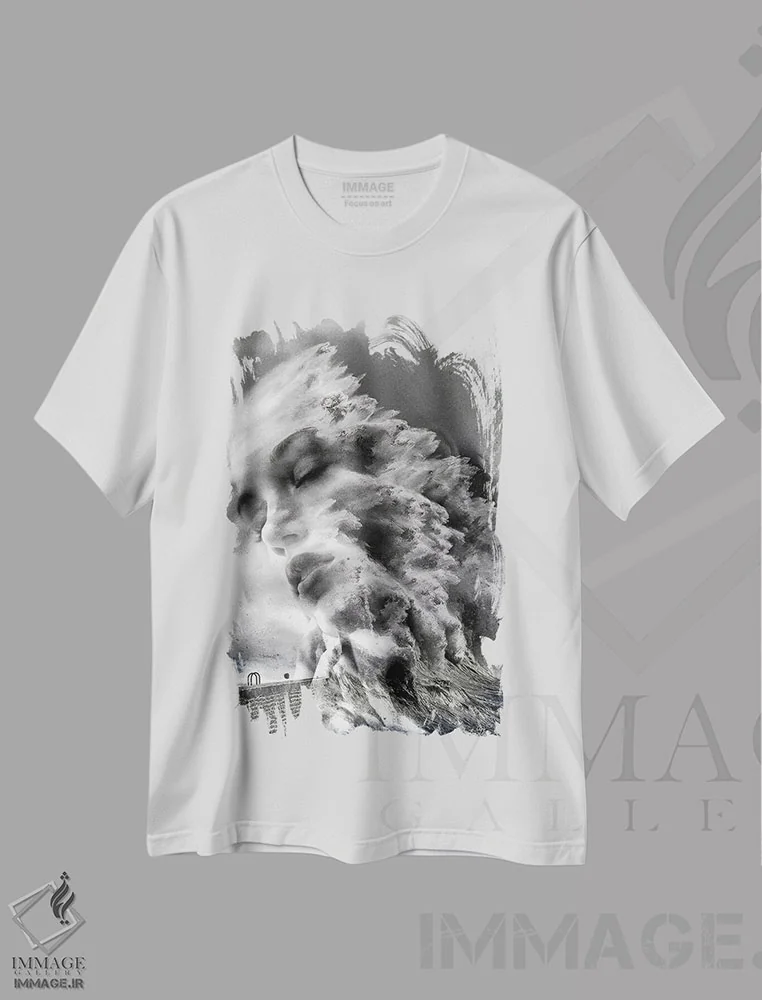 تیشرت سفید طرح دار تصادف، هنر دیجیتال سیاه و سفید اثر دومینیک بادوئل | immage.ir