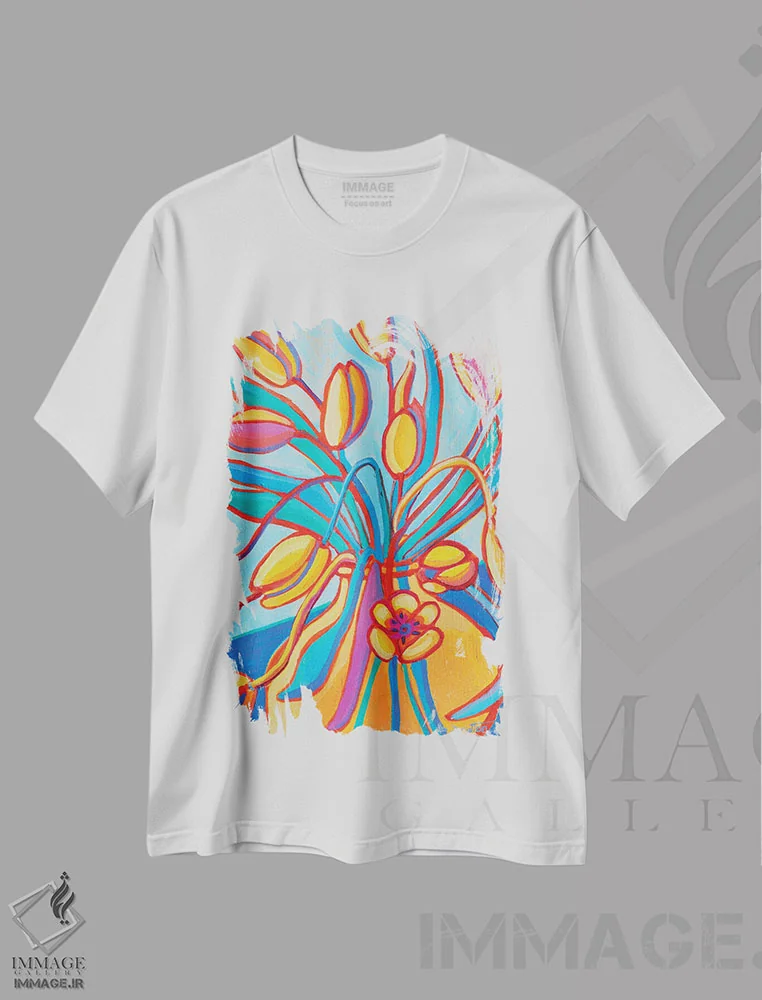 لاله های بهاری روی تی شرت؛ طرحی شاعرانه برای روزهای روشن