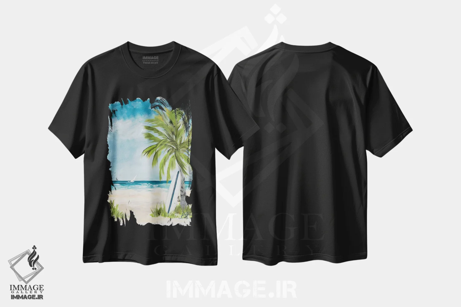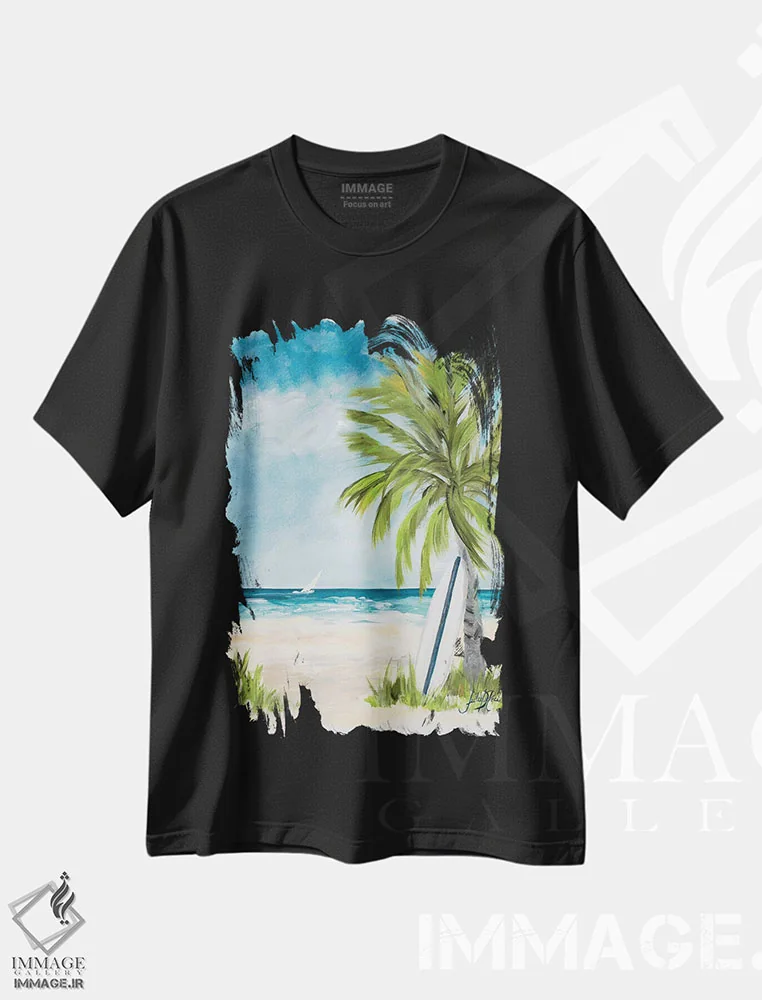 تیشرت مشکی طرح دار روز ابری در بهشت I، دکور ساحلی اثر جولی دریسه | immage.ir