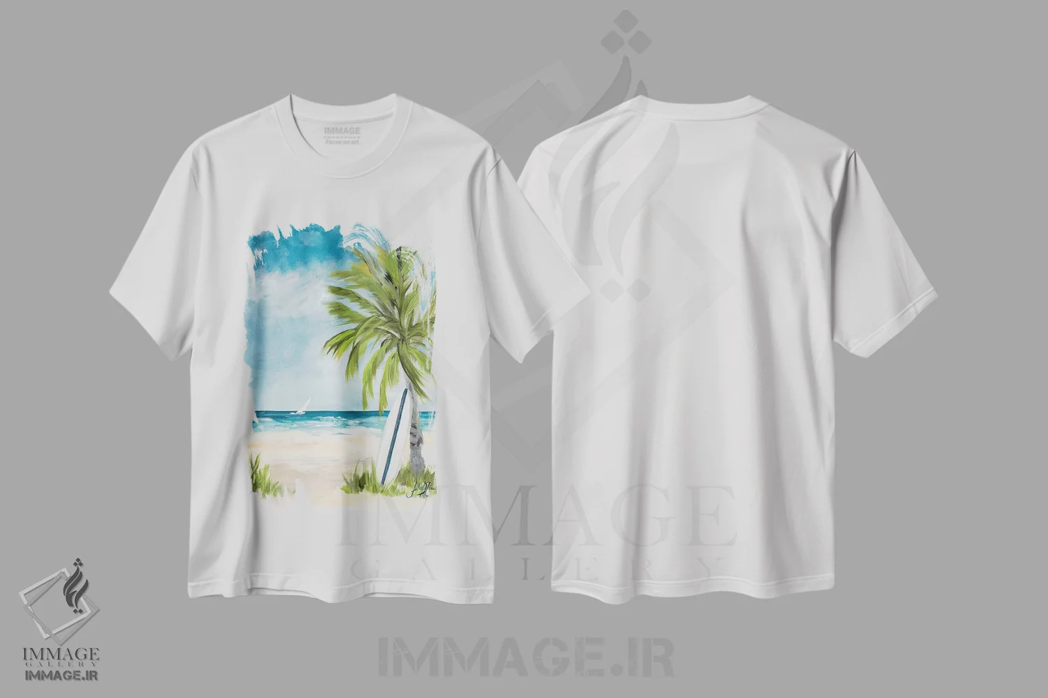 تیشرت سفید طرح دار روز ابری در بهشت I، دکور ساحلی اثر جولی دریسه | فروشگاه ایماژ
