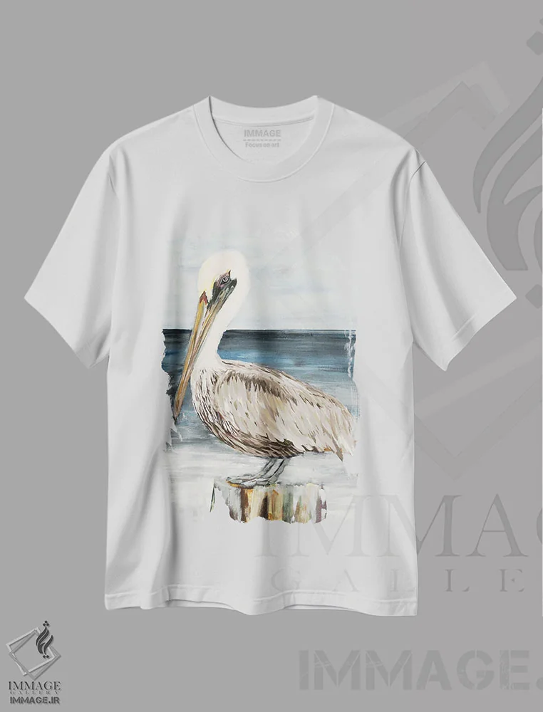 تی شرت «پلیکان نشسته با رنگ ملایم» و استایل آرام طبیعت دوست