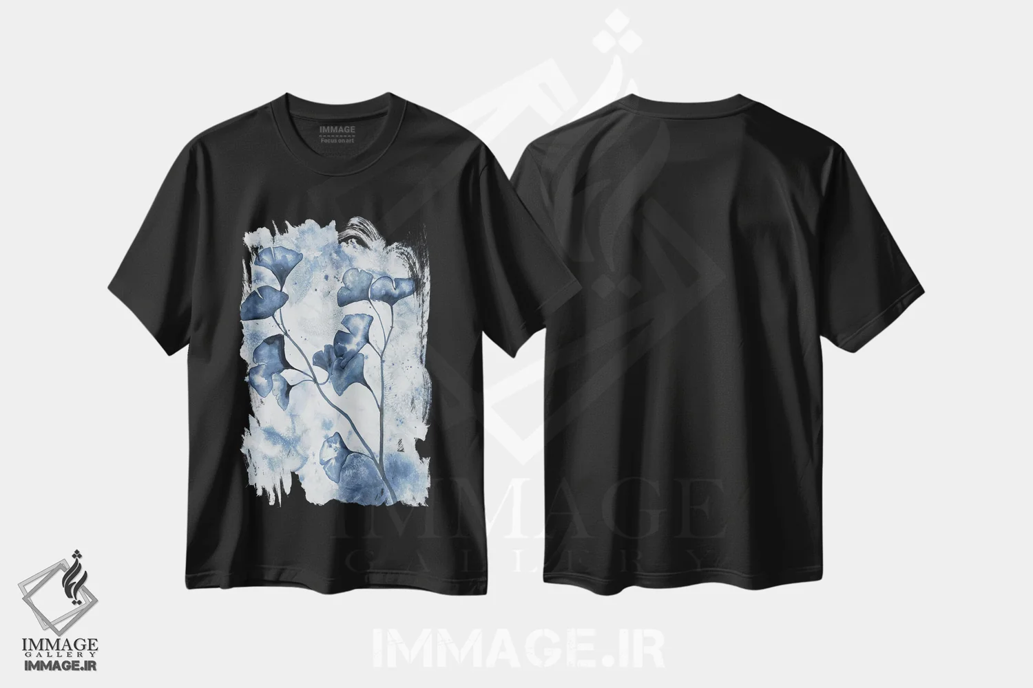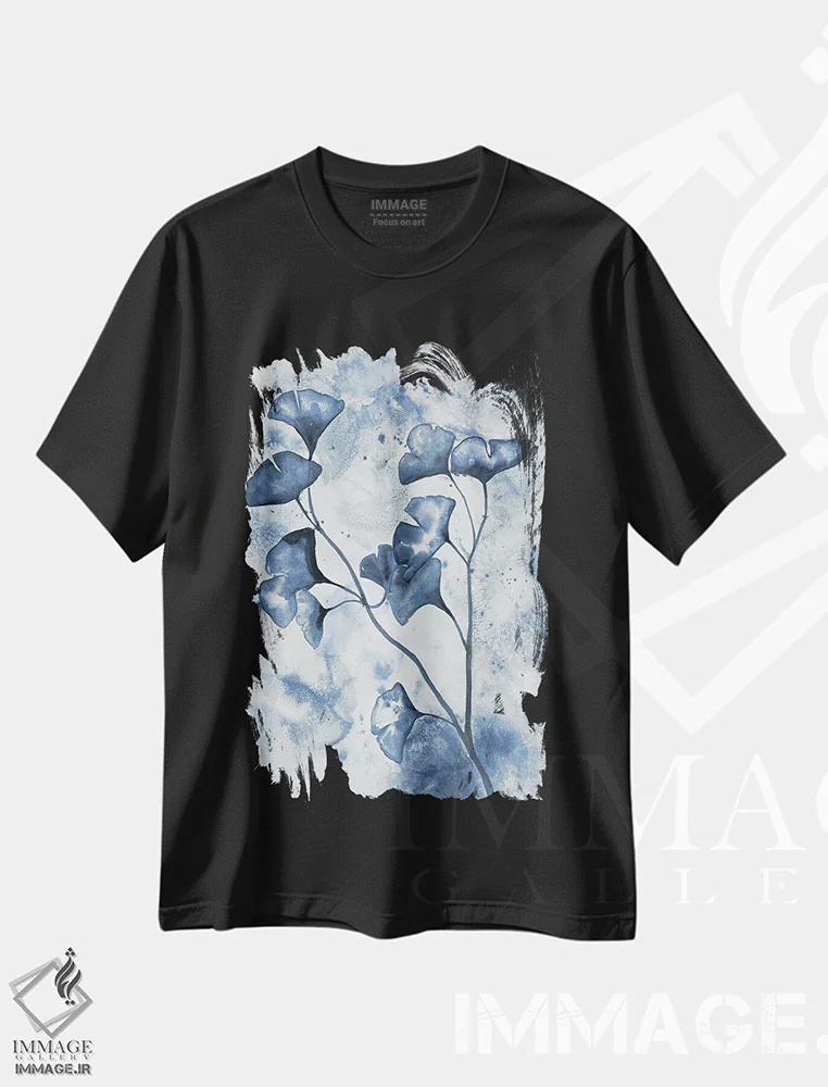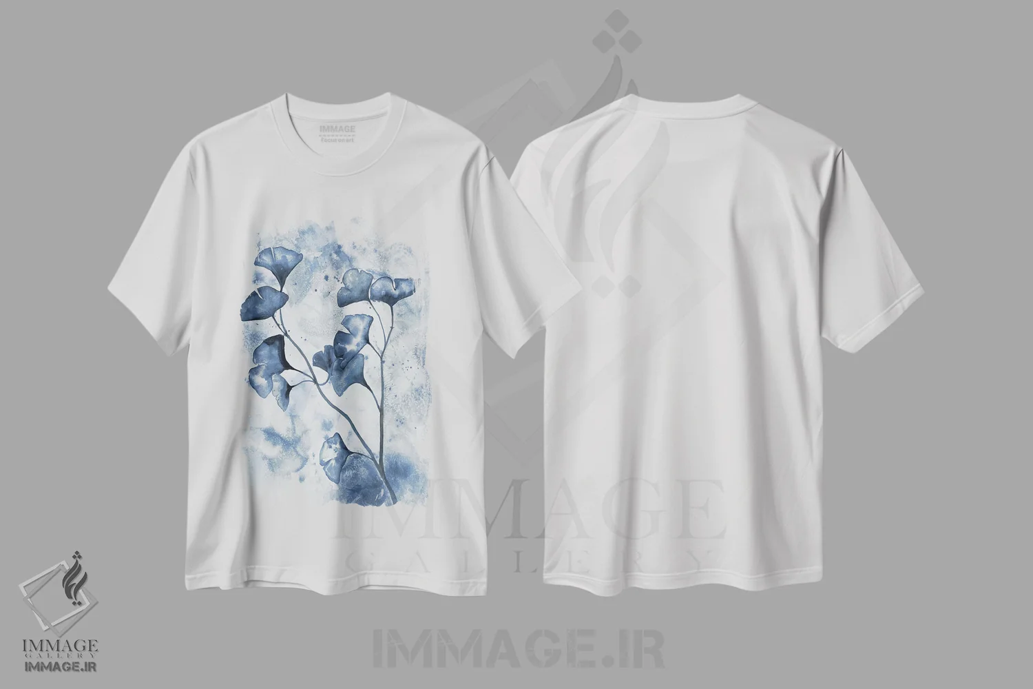 تی شرت «جینکوی آغشته به نیلی ۱»؛ هنر گیاهی در رنگ های آرام